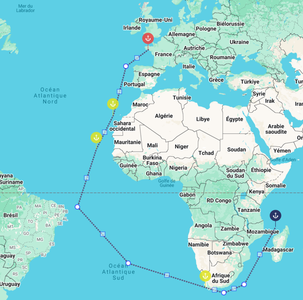 Si tout va bien, l’année prochaine c’est le grand départ. Objectif : descendre l’atlantique jusqu’en Afrique du sud puis remonter le canal du Mozambique jusqu’à Mayotte.